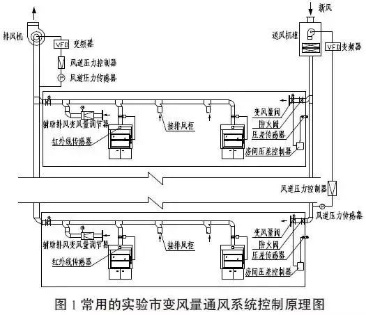 常用的實驗室變風(fēng)量通風(fēng)系統(tǒng)控制原理。(見圖1)